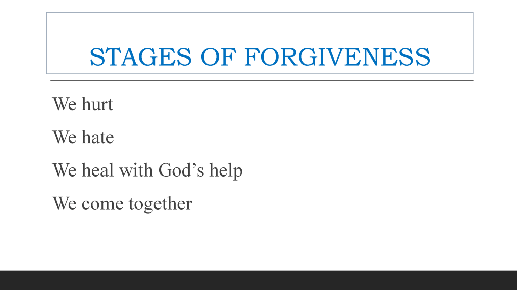 Week Two: Forgiving Those who are Hard to Forgive Posted byMarcia HotchkissMarch 18, 2020March 26, 2020Posted inUncategorized We look at the process of forgiveness and particularly at those people who are hard to forgive. We finished by looking at the Prayer of Examen. Like Loading... Related