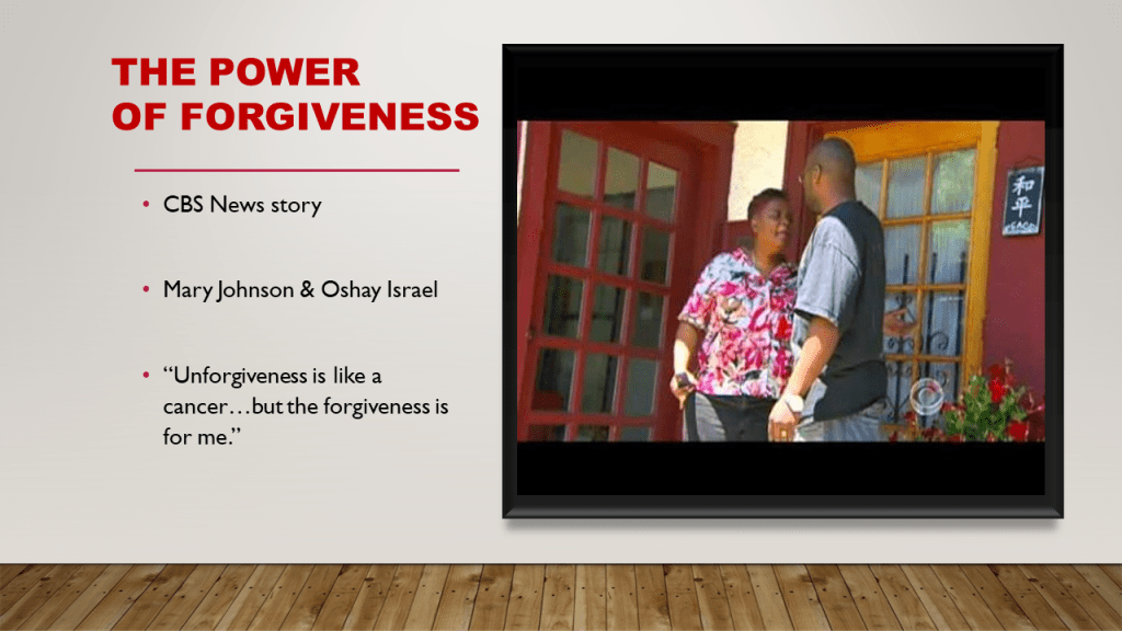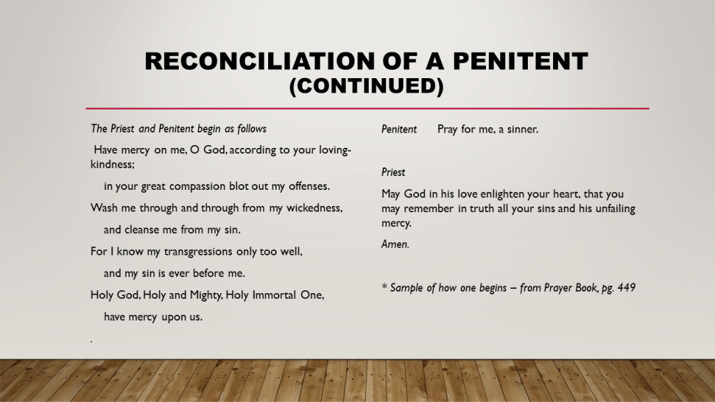 This week, we are continuing our work in our Lenten Class with Prayer, Forgiveness and Reconciliation. We are examining preparing for forgiveness through the lens of sacramental prayer. Our PowerPoint describes sacramental prayer and the rite of Reconciliation of a Penitent. Also, there is a short video of a powerful story about forgiveness. The spiritual practice this week is for you to take time and consider Reconciliation of a Penitent for yourself. Holy Week before Easter is a time when many people prepare and meet one on one with a minister to make their confession and, receiving absolution, are reconciled to God.